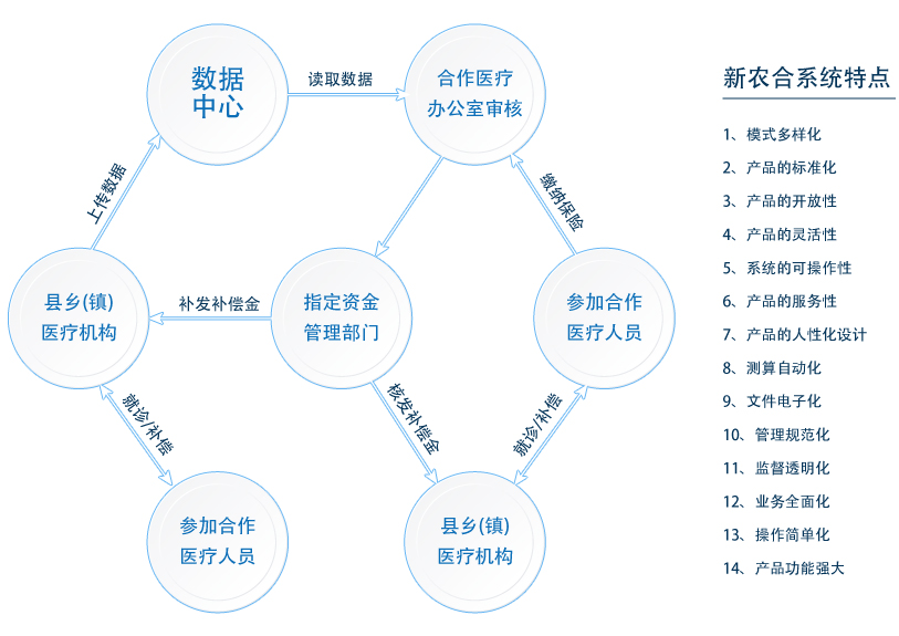 基于國家發(fā)展戰(zhàn)略和建設新型農村合作醫(yī)療體系的要求,遼寧新天數(shù)字科技有限公司嚴格依據(jù)國家衛(wèi)生部《新型農村合作醫(yī)療信息系統(tǒng)基本規(guī)范》以及農村衛(wèi)生所信息系統(tǒng)基本功能規(guī)范的要求和標準設計,開發(fā)設計了基于無線傳輸技術的新型農村合作醫(yī)療管理信息系統(tǒng),以準確性、安全性、穩(wěn)定性、快捷性為指導原則,允許靈活的制定和修改國家及地區(qū)的補償政策,將新農合信息網(wǎng)絡在全國率先部署到行政村,使農民不必長途奔波,在村里就可以實時的通過無線網(wǎng)絡看病和報銷補償,降低了收繳成本,減輕了農民負擔,同時系統(tǒng)提供了新農合政策宣傳信息和資料,便于農民查閱和理解,也便于村級單位的推廣和宣傳。